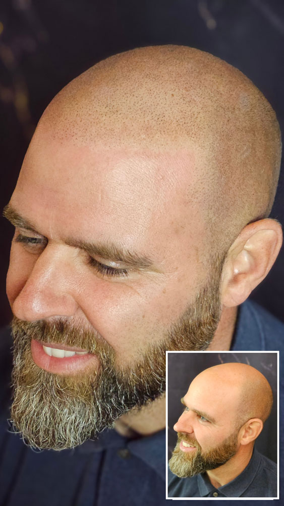 La tricopigmentation au Havre consiste à implanter des micropigments dans le cuir chevelu afin de densifier visuellement les zones dégarnies. Elle permet de camoufler : calvitie, alopécie, pelade et cicatrices.